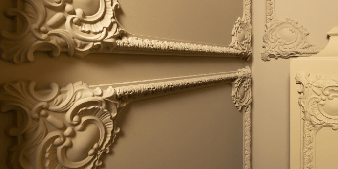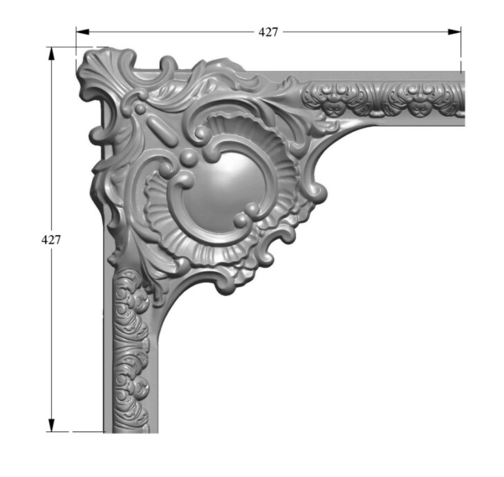 Adorno de moldura decorado generosamente con hojas de acanto. Combínalo con el modelo P3020 y crea elegantísimos marcos de pared.