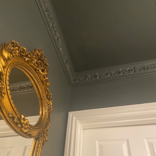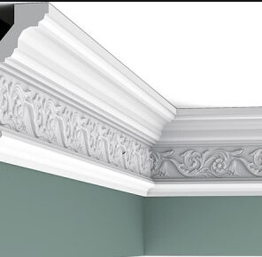 Cornisa clásica con un patrón de hojas detallado. Atrae totalmente la atención en su interior.