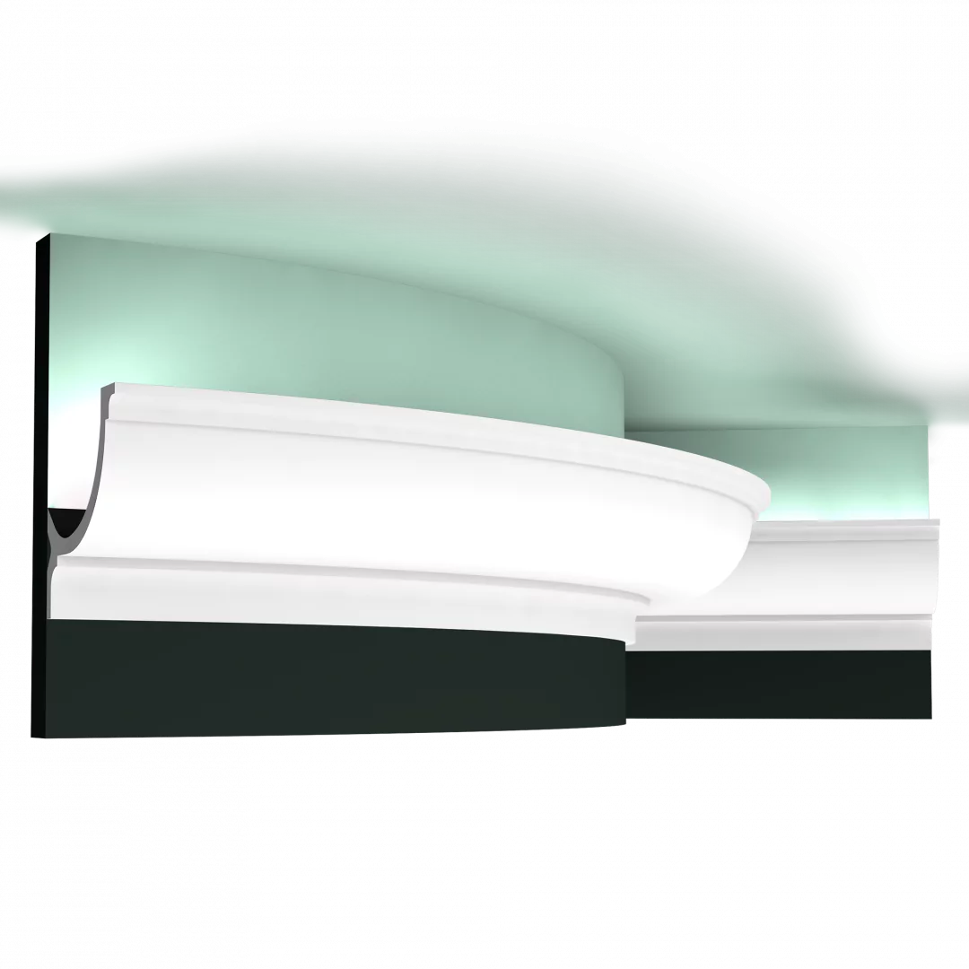 Forma flexible del modelo C902. Cornisa pequeña, inspirada en la forma del óvolo. Encaja sin fisuras en cualquier estancia. Gracias a la tecnología Flex, los muros redondeados o las superficies curvas no suponen ningún problema.