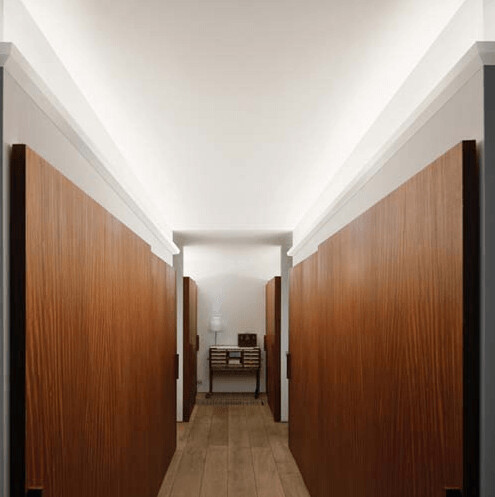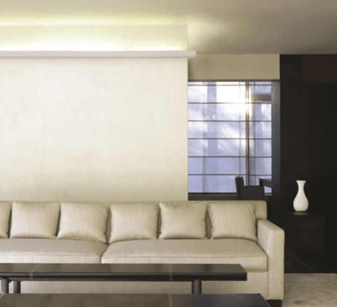 Este perfil integra de manera actual y minimalista iluminación indirecta en el interior. Diseño de Jacques Vergracht.
