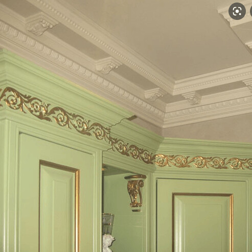 Cornisa clásica con precioso patrón de flores y hojas. Este perfil alto le sube categoría a tu espacio al instante.