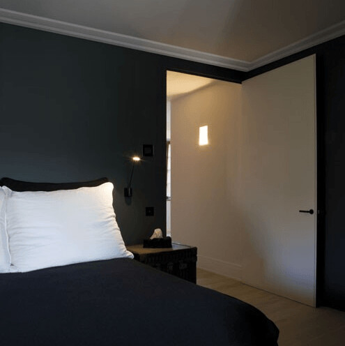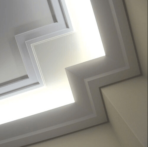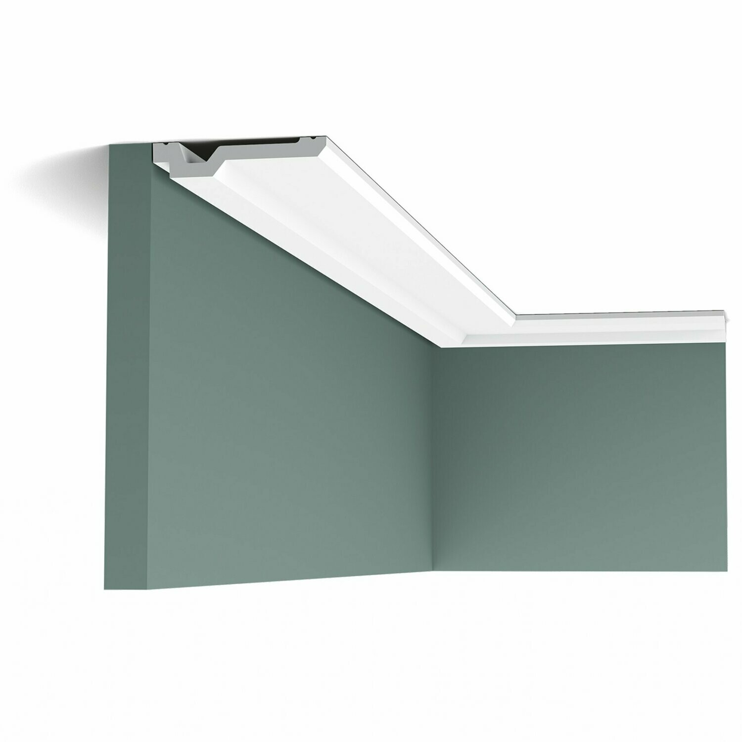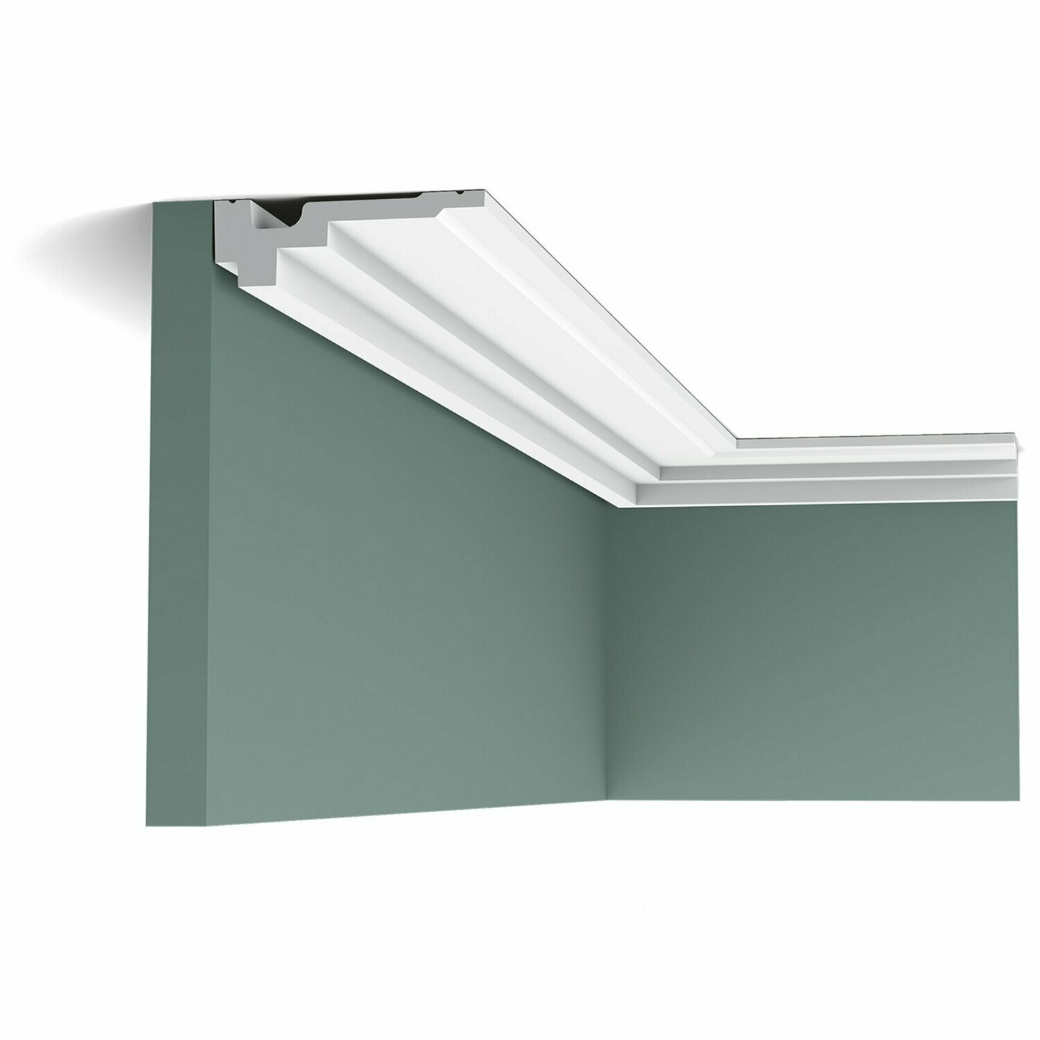Sencilla cornisa lisa con línea de sombras en la parte posterior. ¡Aporta justo ese pequeño toque interesante a la junta entre techo y pared! Diseño de Jacques Vergracht.