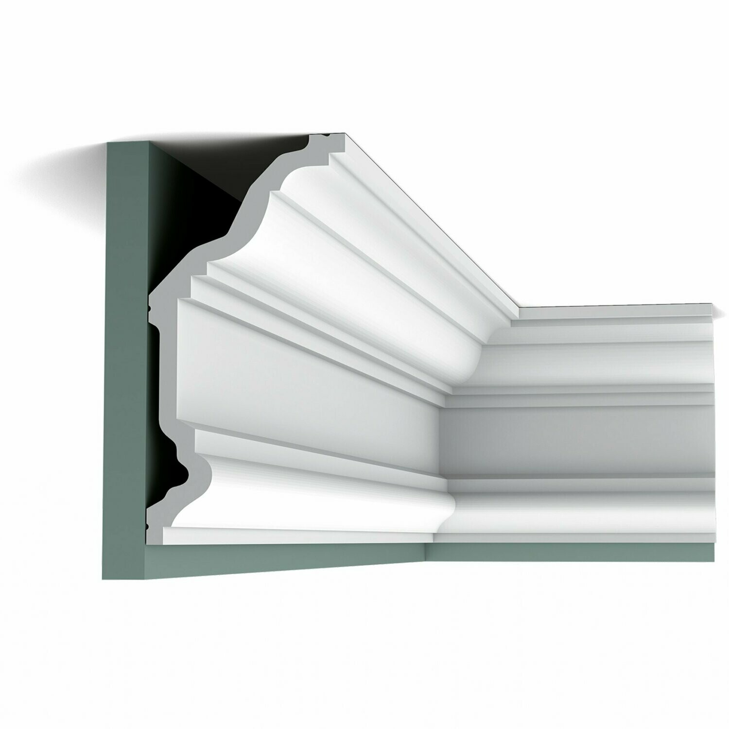 Borde: el diseño de este modelo Cotswold de gran tamaño permite utilizar la moldura de dos maneras. Aquí fijamos la sección más grande a la pared, haciendo que el espacio parezca más alto.