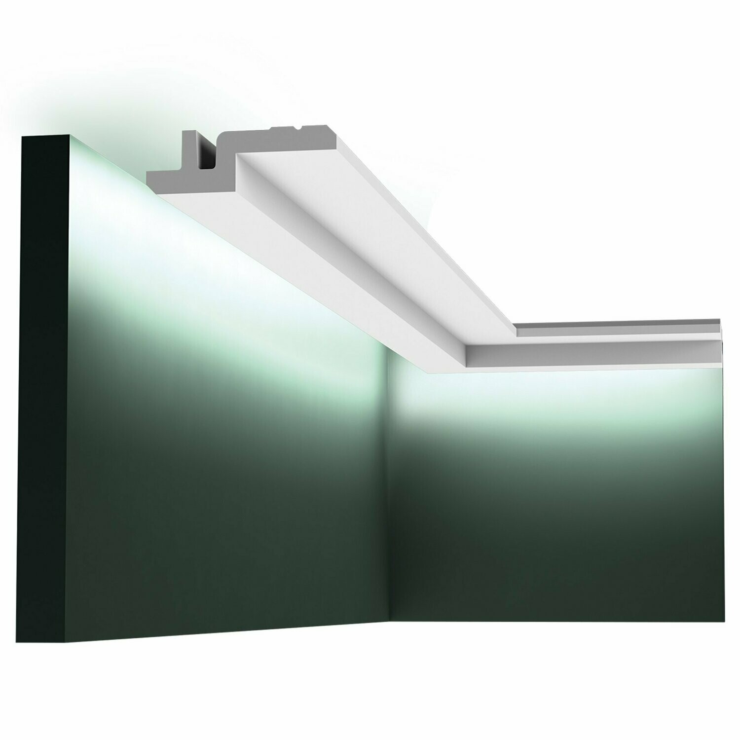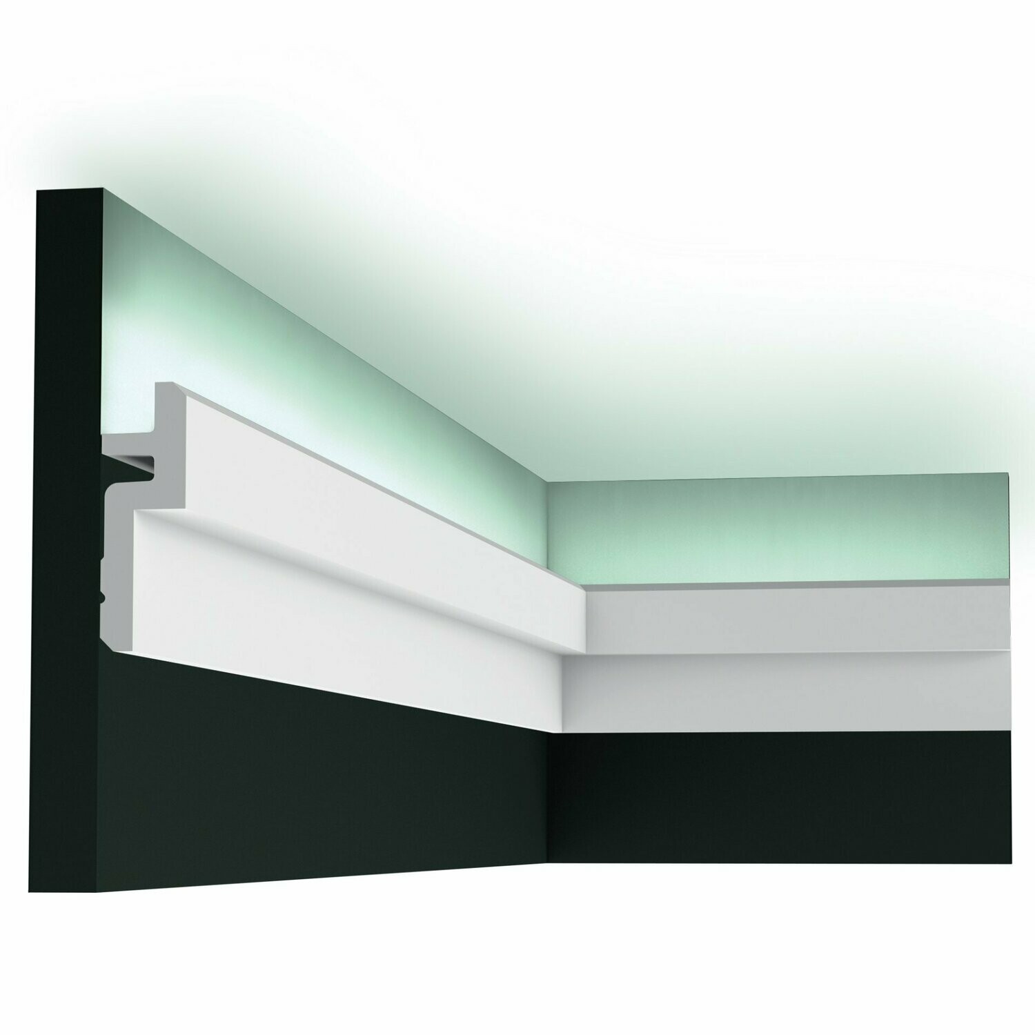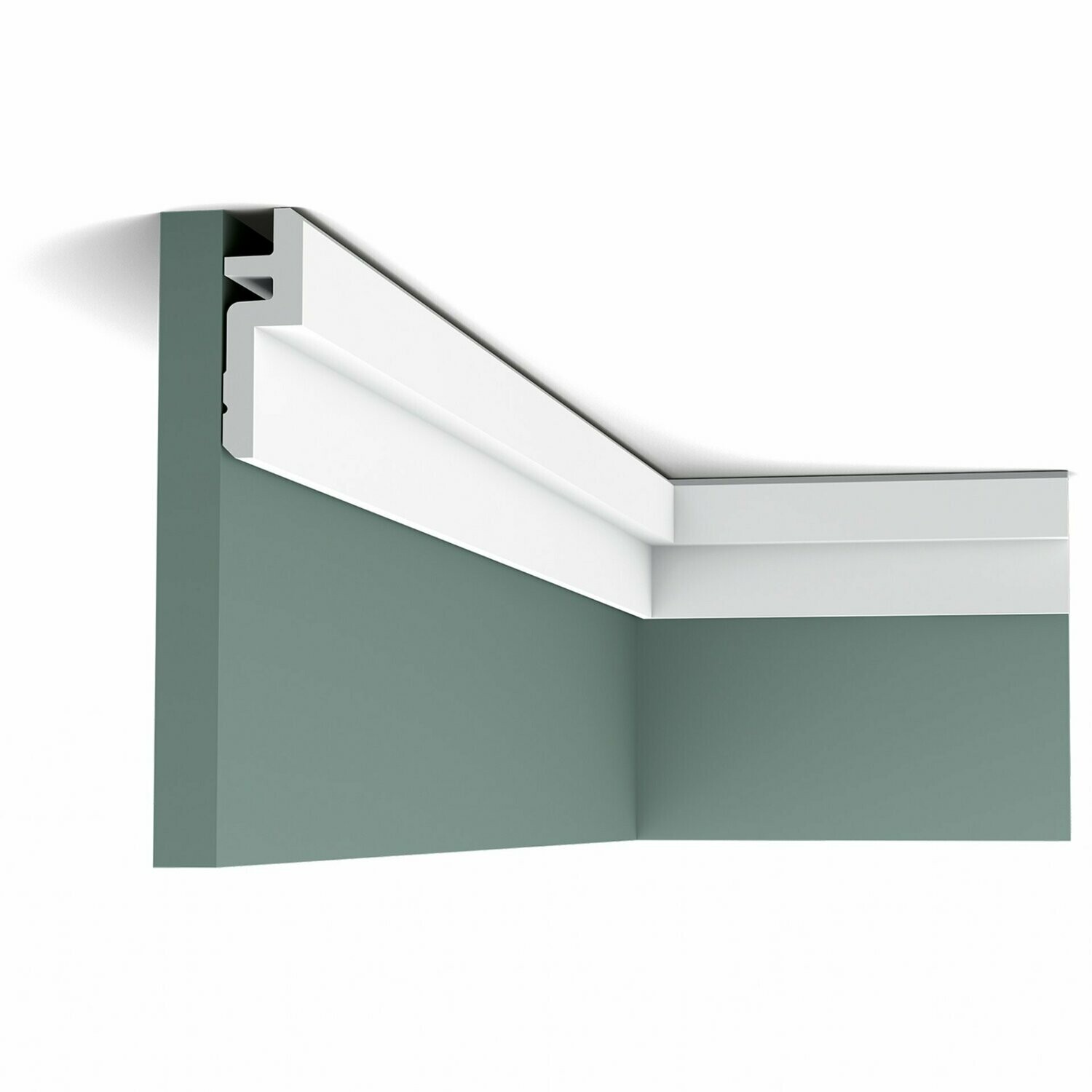 Un perfil sobrio y moderno integrado en la serie Steps. Aquí colocamos el lado más largo sobre el muro, lo que genera una sensación de más altura. El ángulo achaflanado en la parte superior e inferior produce, además, una sutil línea de sombras. Diseño de Orio Tonini.