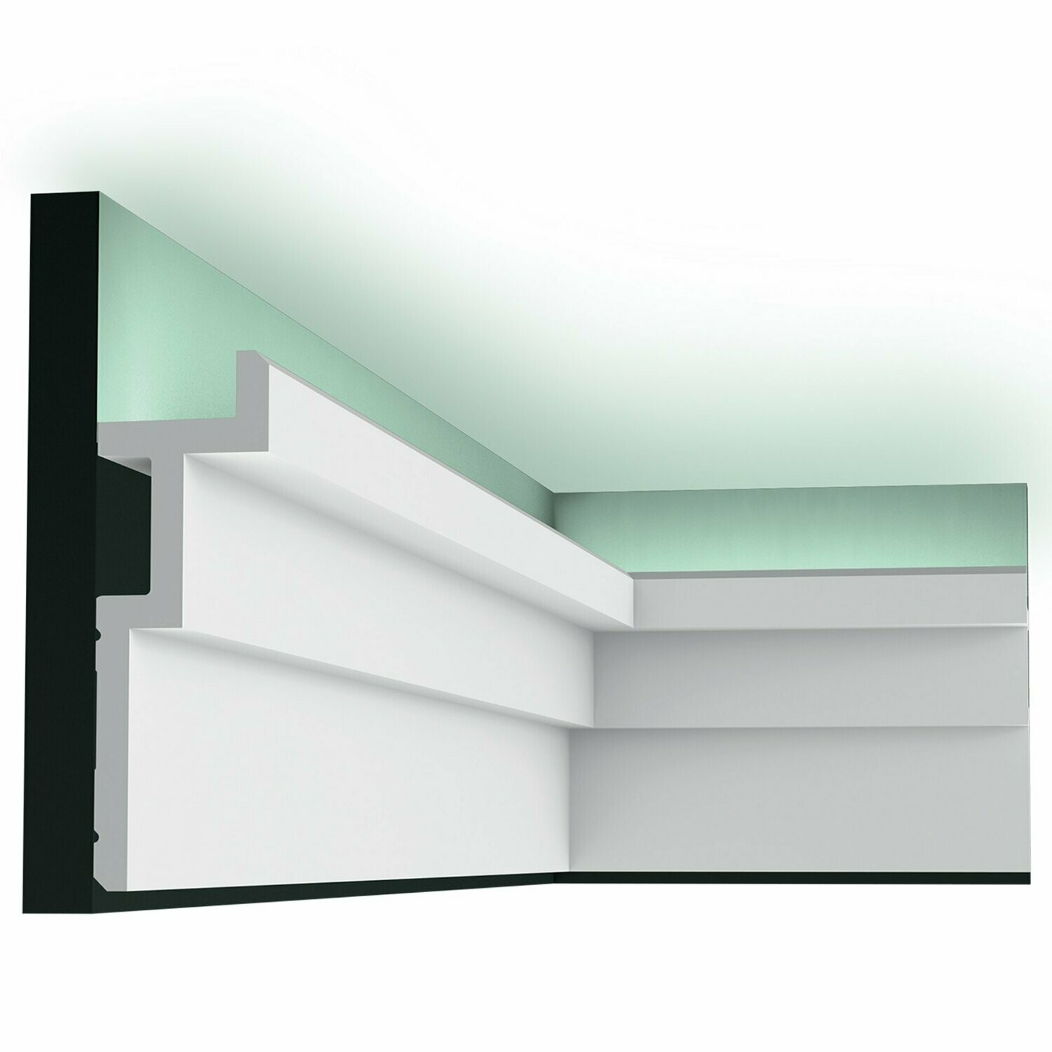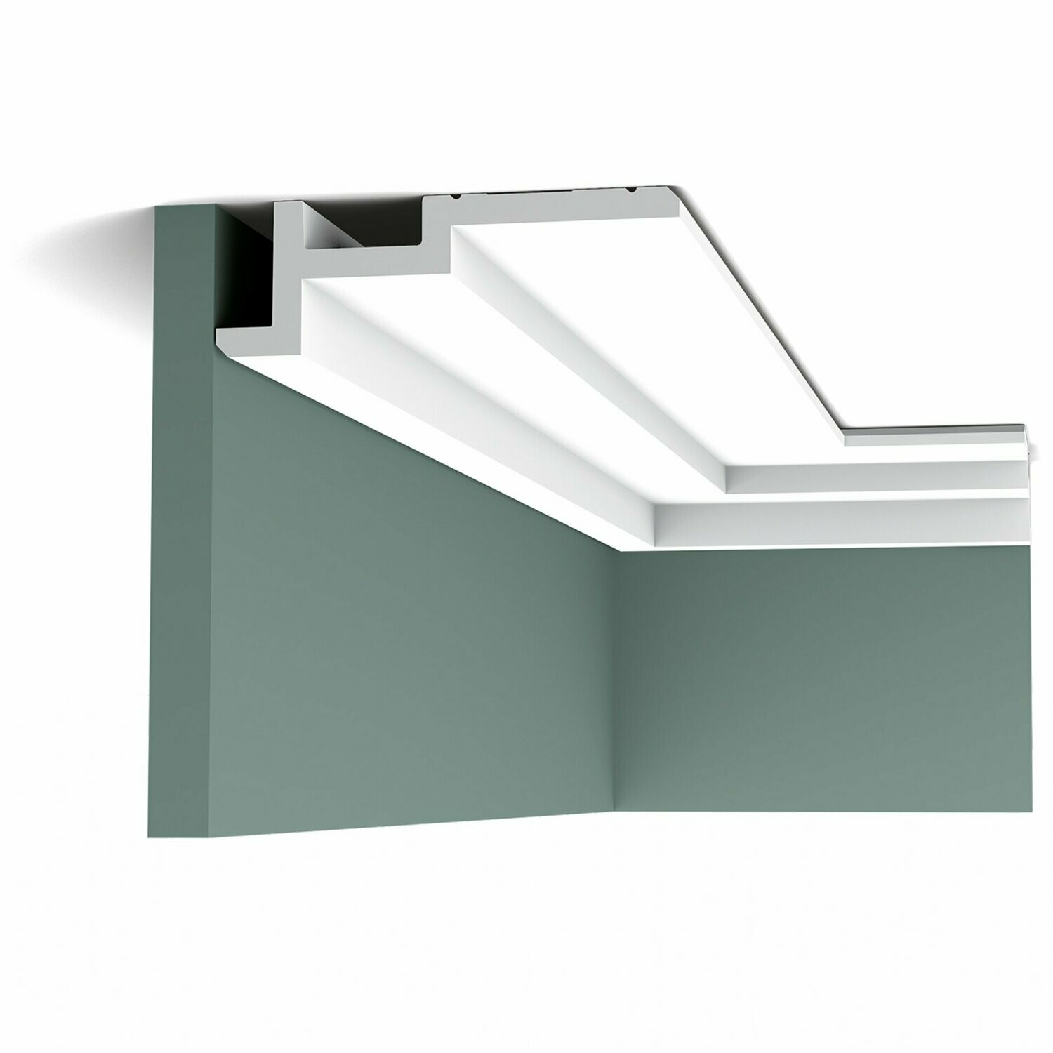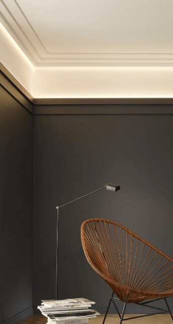 Un perfil sobrio y moderno integrado en la serie Steps. Aquí colocamos el lado más largo sobre el techo, lo que da al espacio una sensación de más anchura. El ángulo achaflanado en la parte superior e inferior produce, además, una sutil línea de sombras.