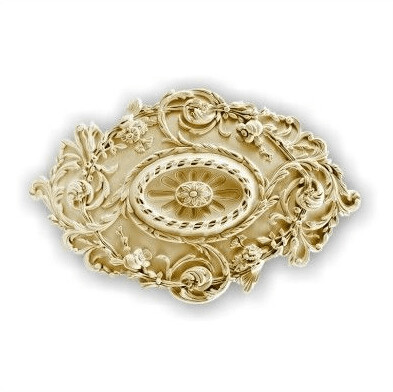 Ovalado rosetón clásico repujado con impresionante tallado de hojas y flores.