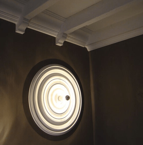 Rosetón grande con anillos concéntricos. Se puede utilizar para ocultar cables.