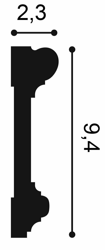 L 230 x H 9,4 x A 2,3 cm