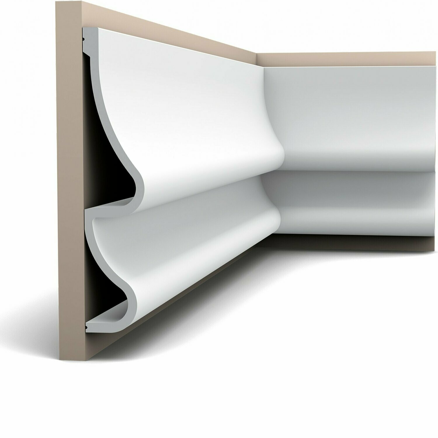 También disponible en Flex.Moldura con hojas de acanto y almendros. Este perfil se puede integrar tanto en un interior clásico como moderno para lograr un detalle agradable. Combínalo con el modelo P101A.
