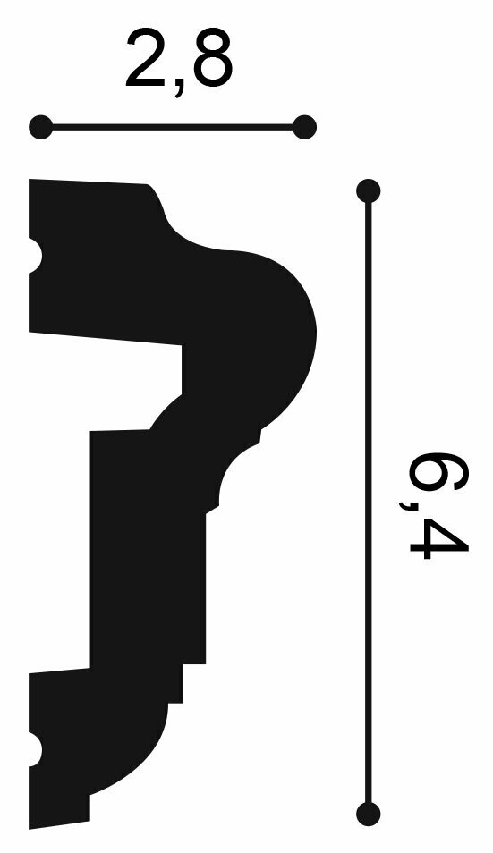 L 200 x H 6,4 x A 2,8 cm