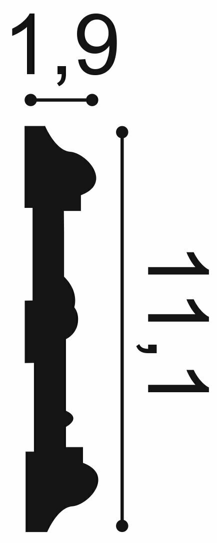 L 200 x H 11,1 x A 1,9 cm