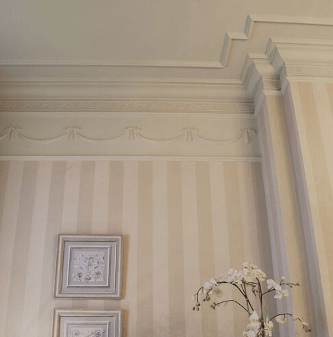 También disponible en FlexMoldura con generoso motivo de hojas. Puede lucir tanto en una estancia moderna como clásica.