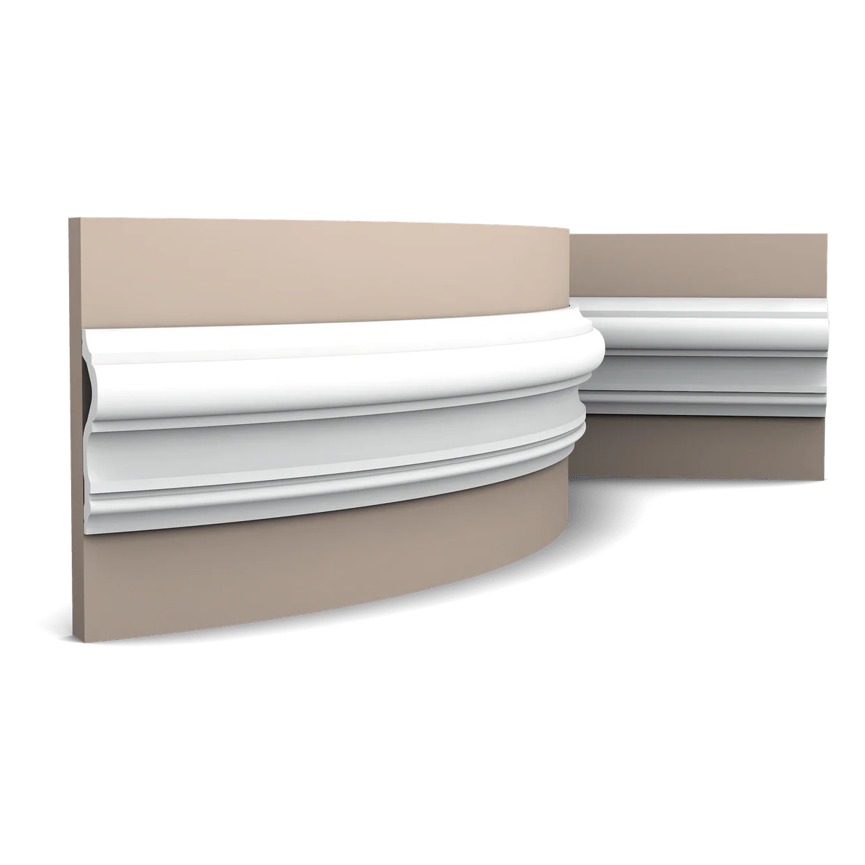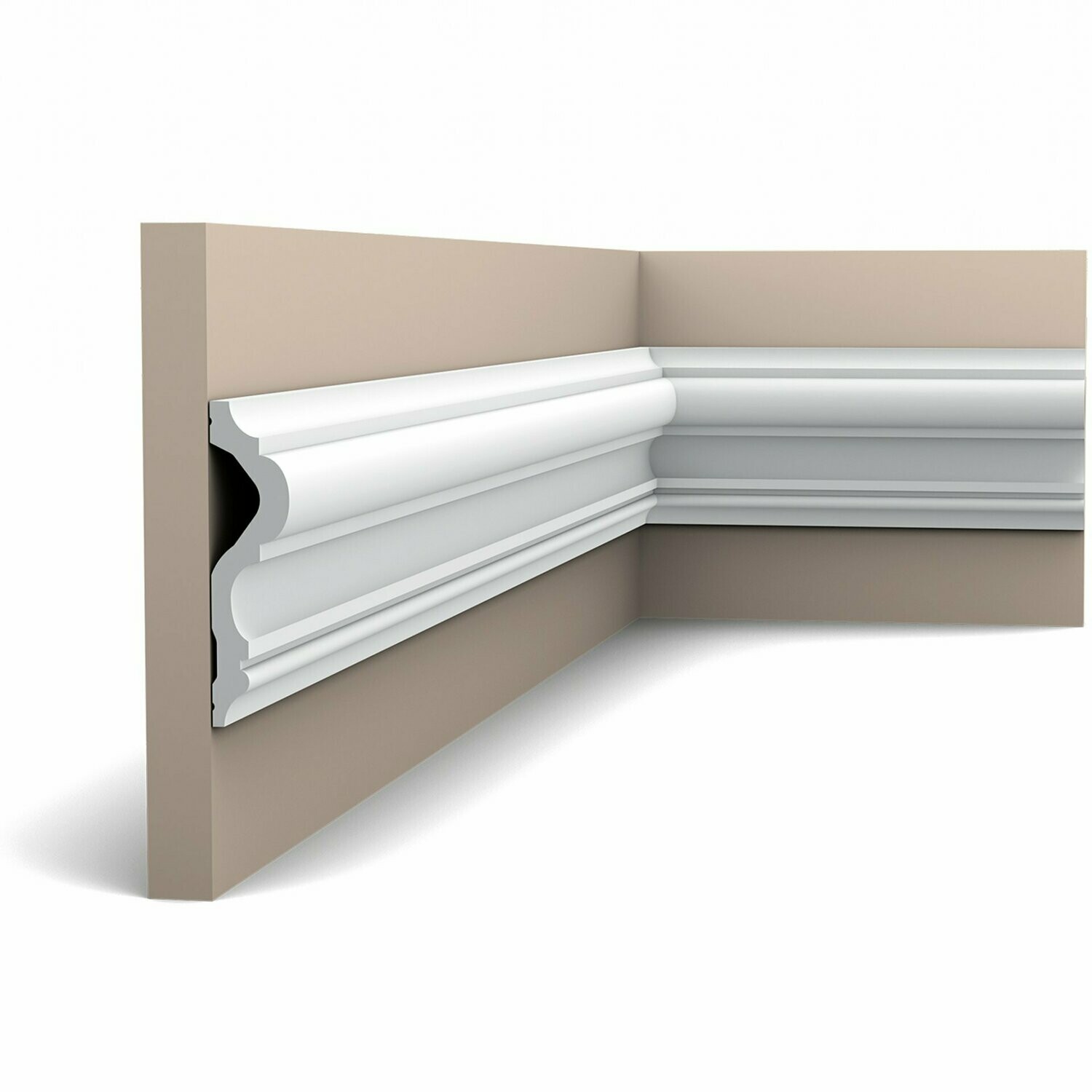 Versión flexible del modelo P8050. Una moldura clásica con suaves curvas que contribuye al esplendor de cualquier estancia. Gracias a la tecnología Flex, los muros redondeados o las superficies curvas no suponen ningún problema.