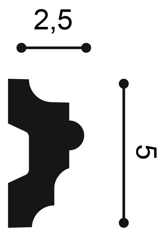 L 200 x H 5 x A 2,5 cm