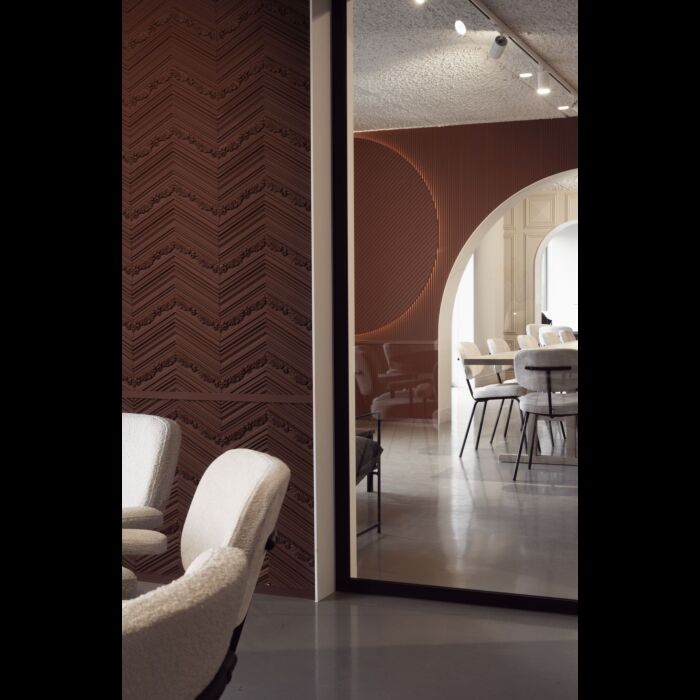 Nuestro Chevron W130 es un clásico patrón de suelo que ahora extendemos a las paredes para una sensación de lujo instantánea. Los bordes laterales acabados y el diseño inteligente permiten una instalación rápida y fácil. Cubre una pared entera o acentúa una parte de la habitación (por ejemplo, la chimenea, el cabecero...). También ha demostrado tener propiedades térmicas y acústicas positivas.