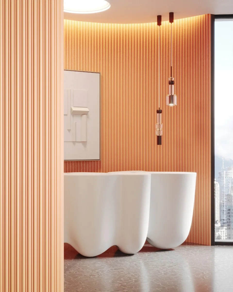 WX211 Flute es un nuevo y excepcional panel de pared. Cuando se colocan horizontalmente, los paneles crean un efecto dinámico de ondas. La alternancia de protuberancias grandes y pequeñas crea un juego de luces y sombras, añadiendo profundidad y movimiento a la habitación. Por otro lado, cuando se instalan verticalmente, los paneles ofrecen una sensación de elegancia estructurada, acentuando la altura de la habitación y creando un fondo visualmente intrigante. Hecho de materiales 100 % sostenibles. Utilice esta versión de 2,60 m para cubrir alturas de techo completas de una sola vez. Para todas las demás aplicaciones, puede utilizar la versión de 2 m.