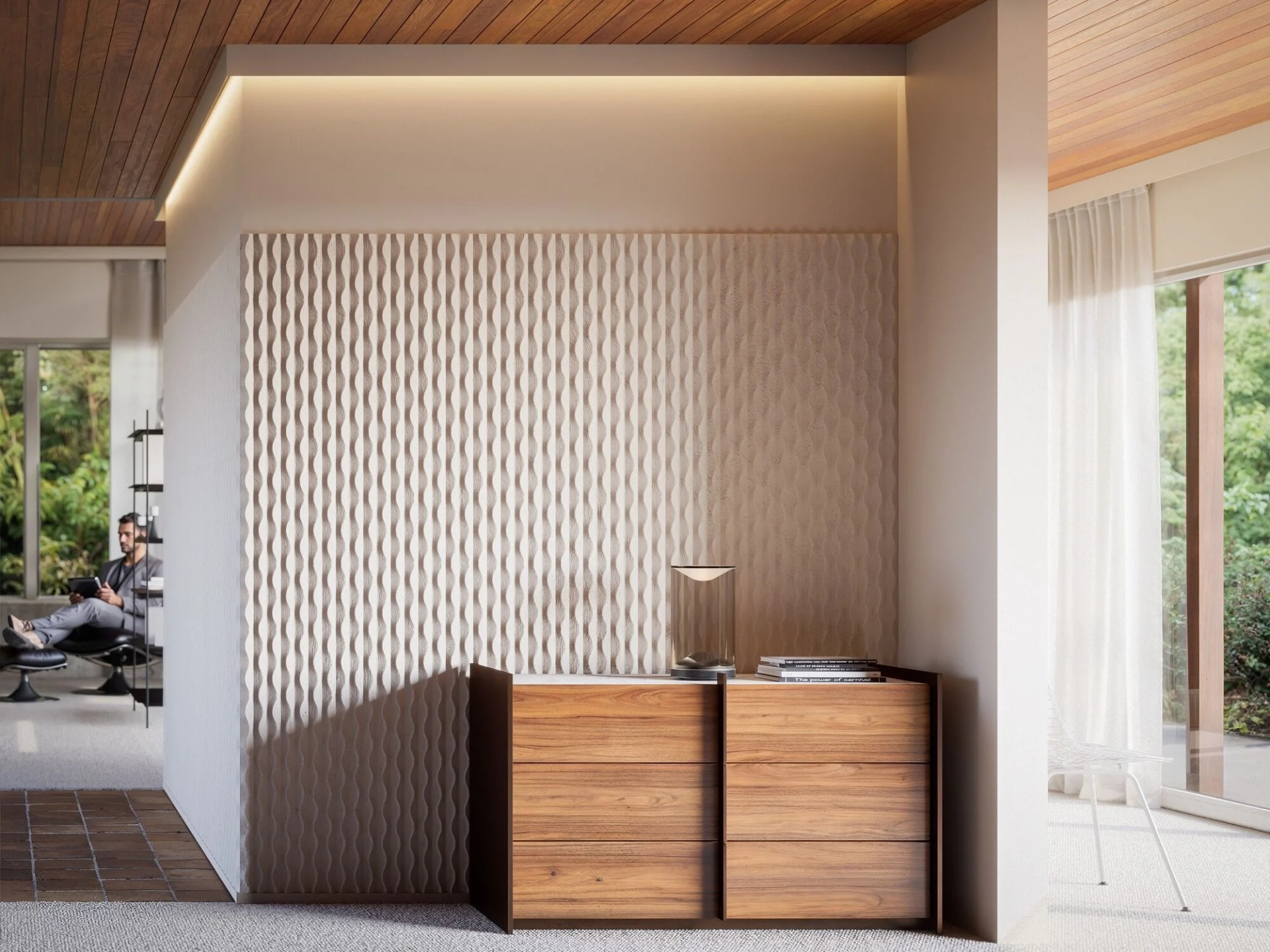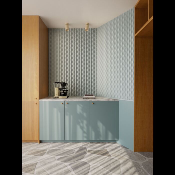 W219 Zea fue diseñado por la artista británica Jan Erika. Inspirado en las mareas de tres mares, este panel orgánico, casi escultórico, juega con la textura, el color y la sombra, creando un efecto suave pero potente.