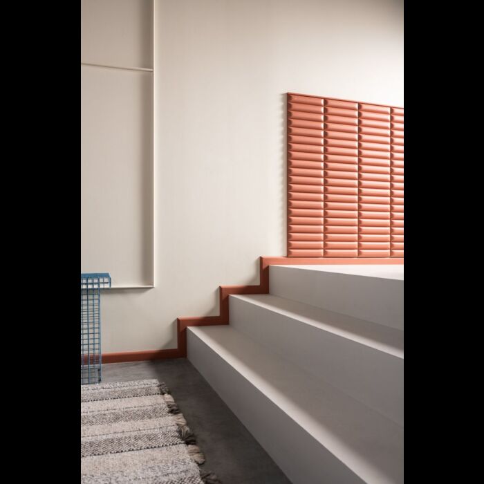 Versión flexible del SX182. Este rodapié multifuncional con parte superior redondeada ofrece infinitas posibilidades. Gracias a su tecnología Flex, las paredes y superficies curvas no suponen ningún problema.