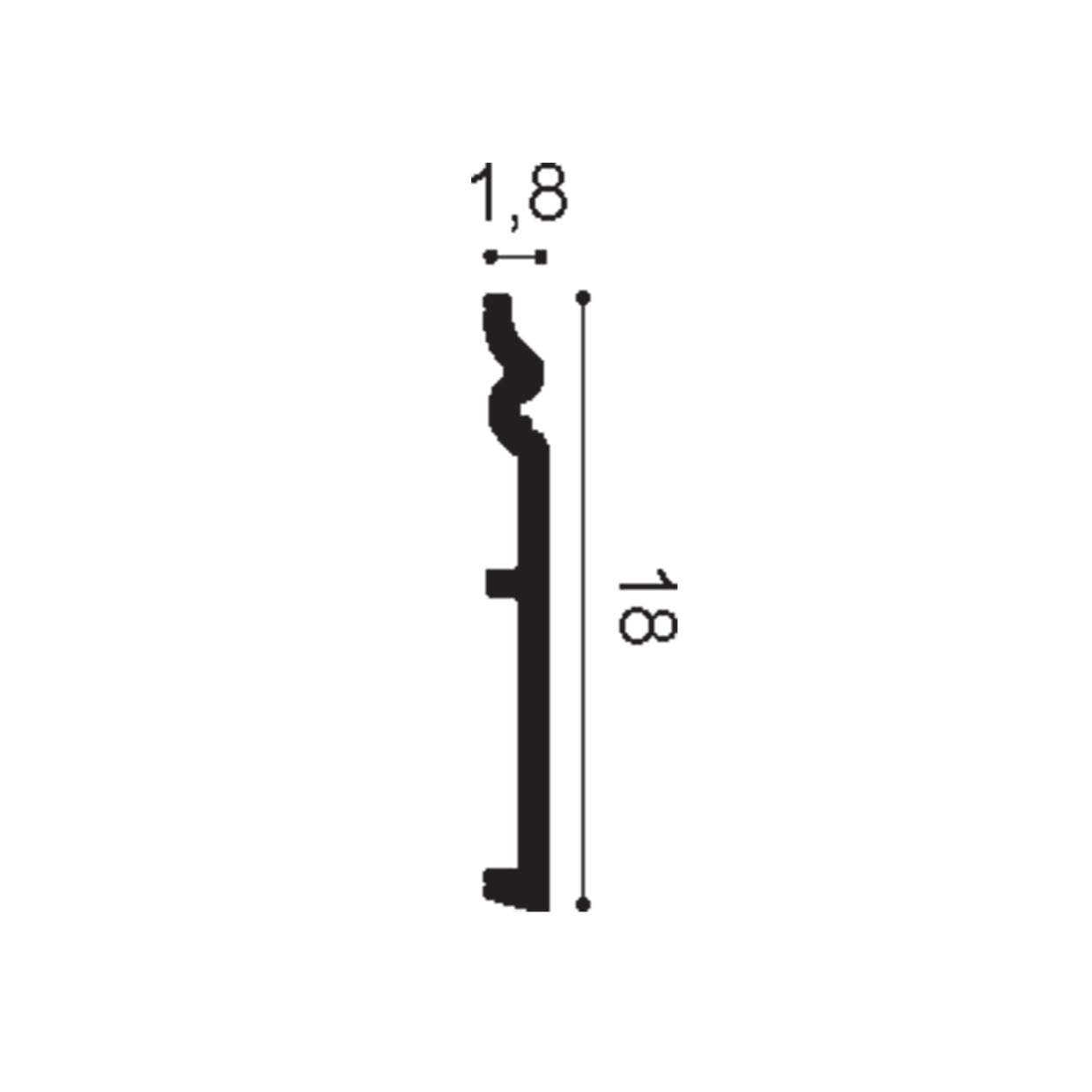 L 2000 x H 180 x A 18mm
