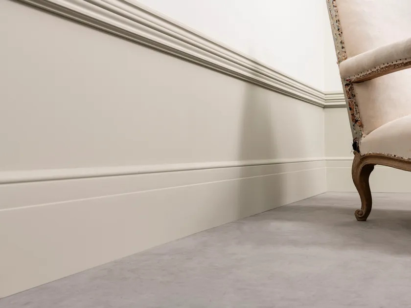 Este rodapié alto evita la transición abrupta de la pared al suelo y oculta sin esfuerzo cualquier pequeña imperfección. Diseñado por Xavier Donck.